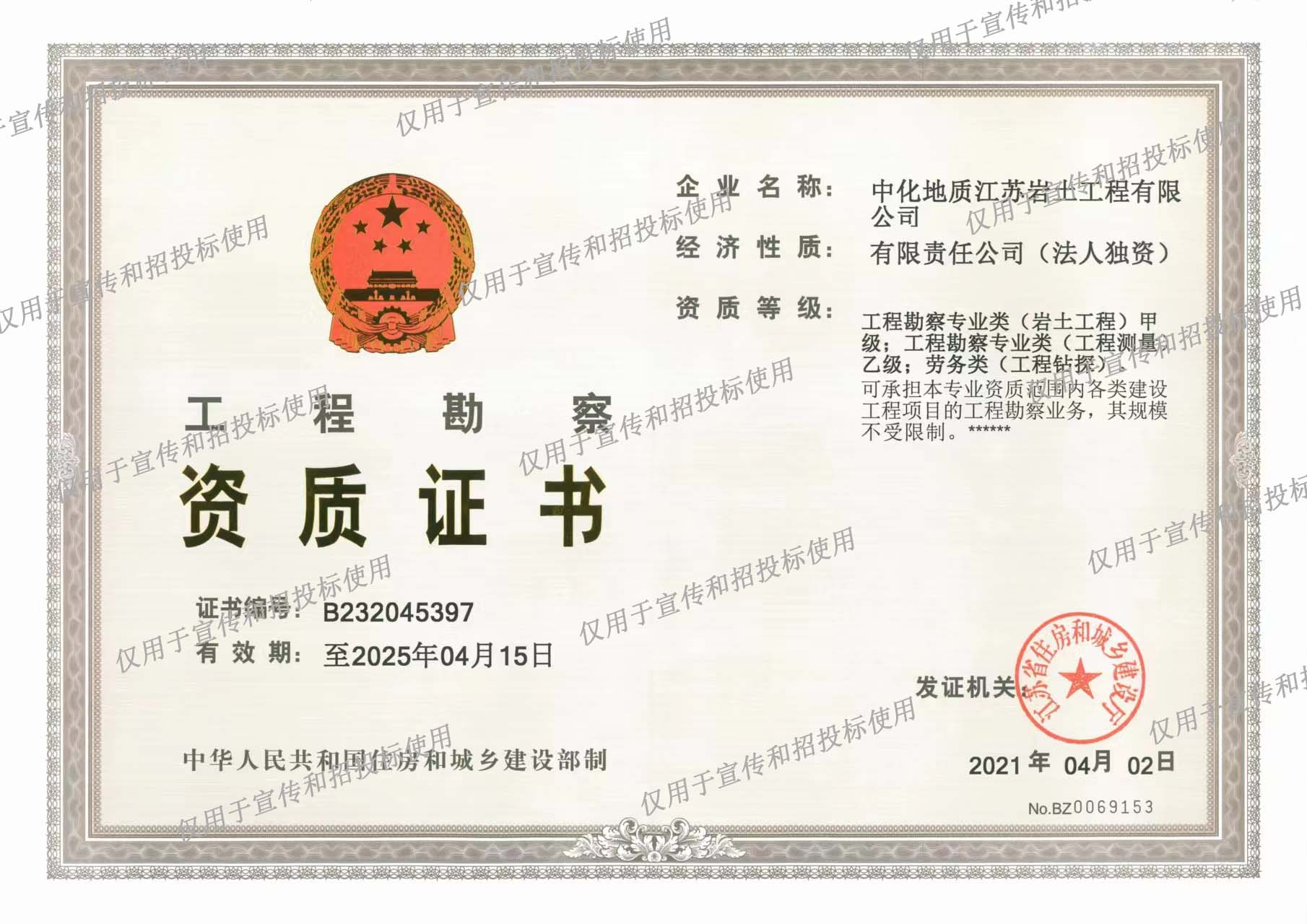 工程勘察资质证书