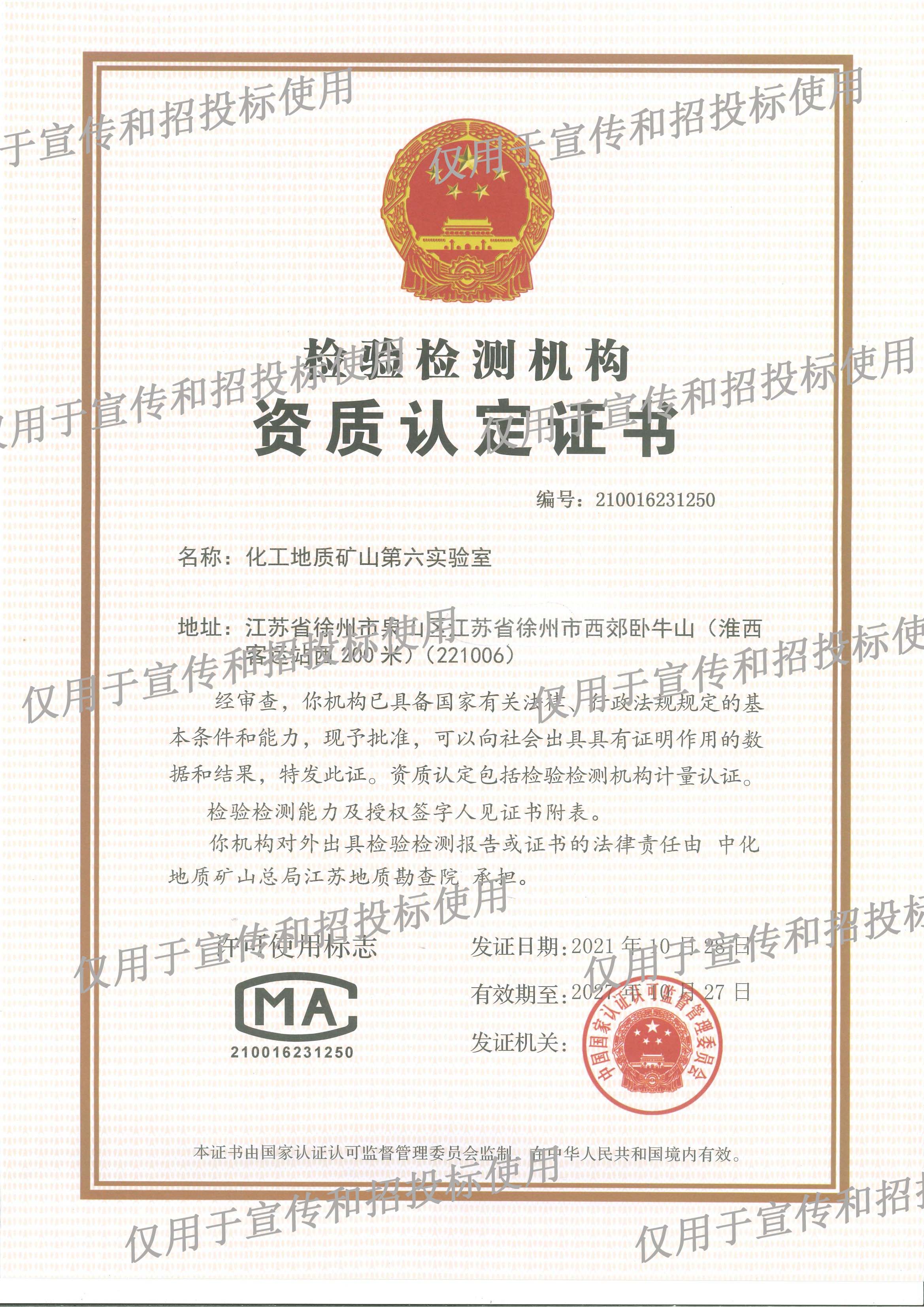 检验检测机构资质认定证书