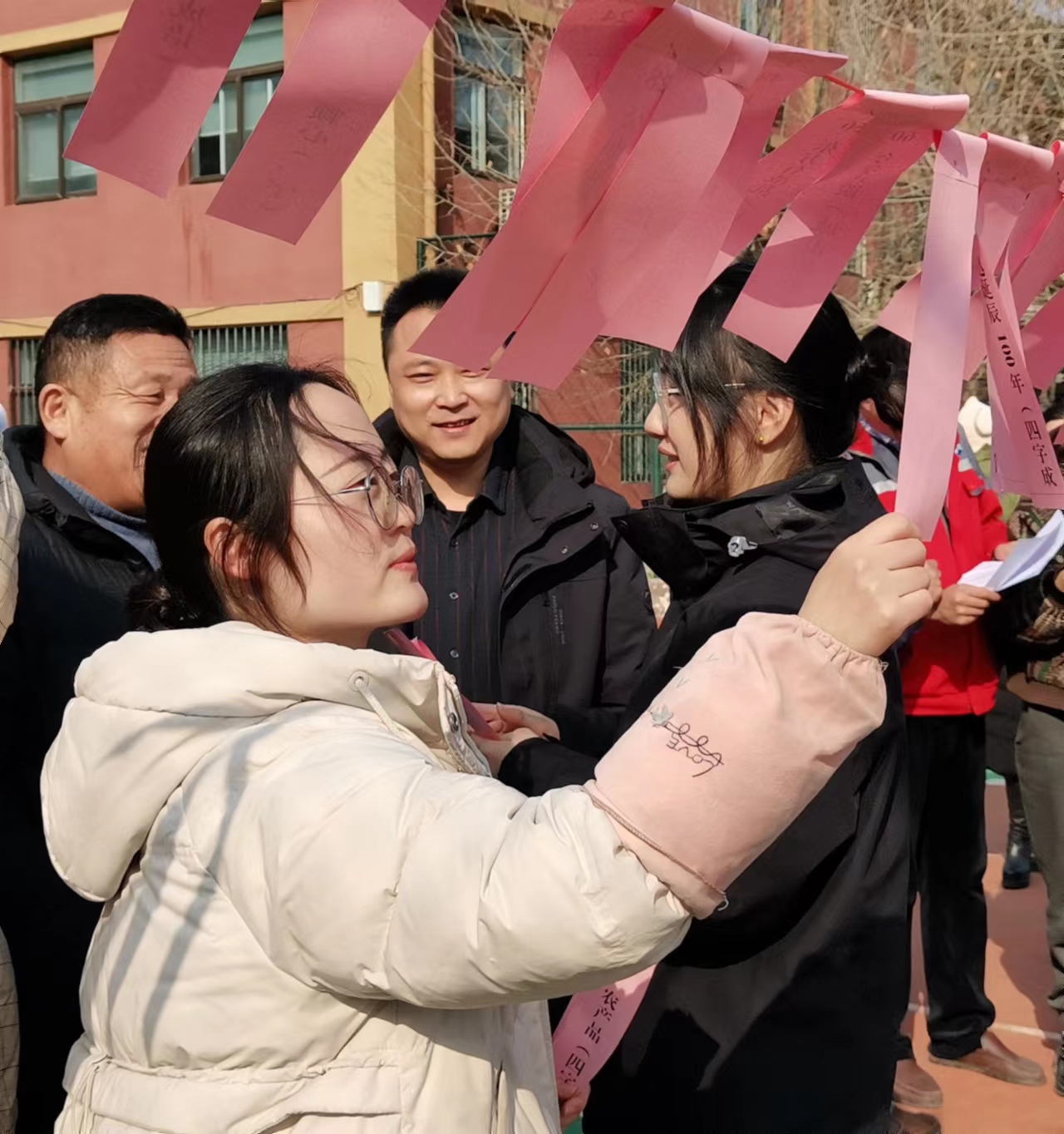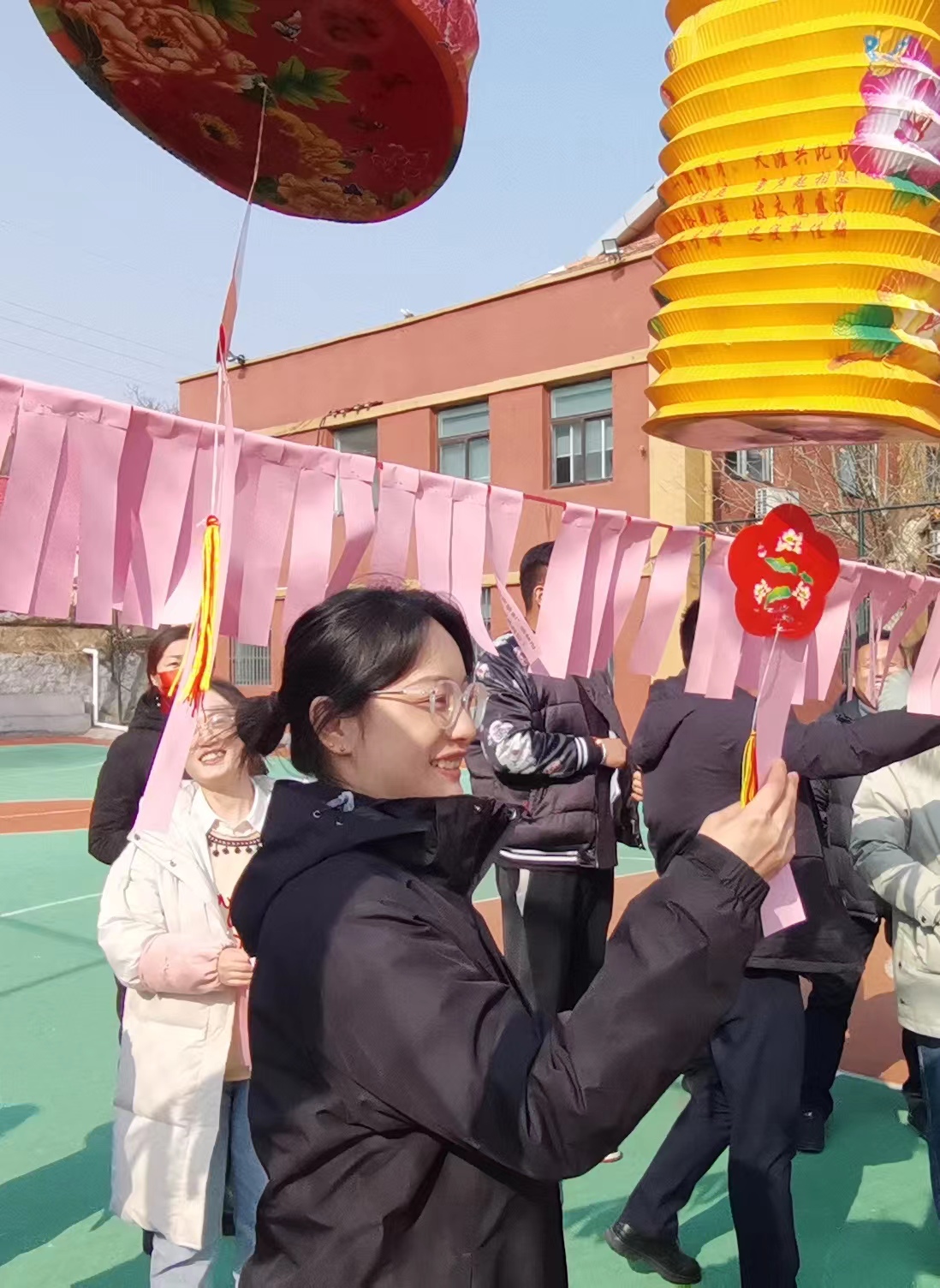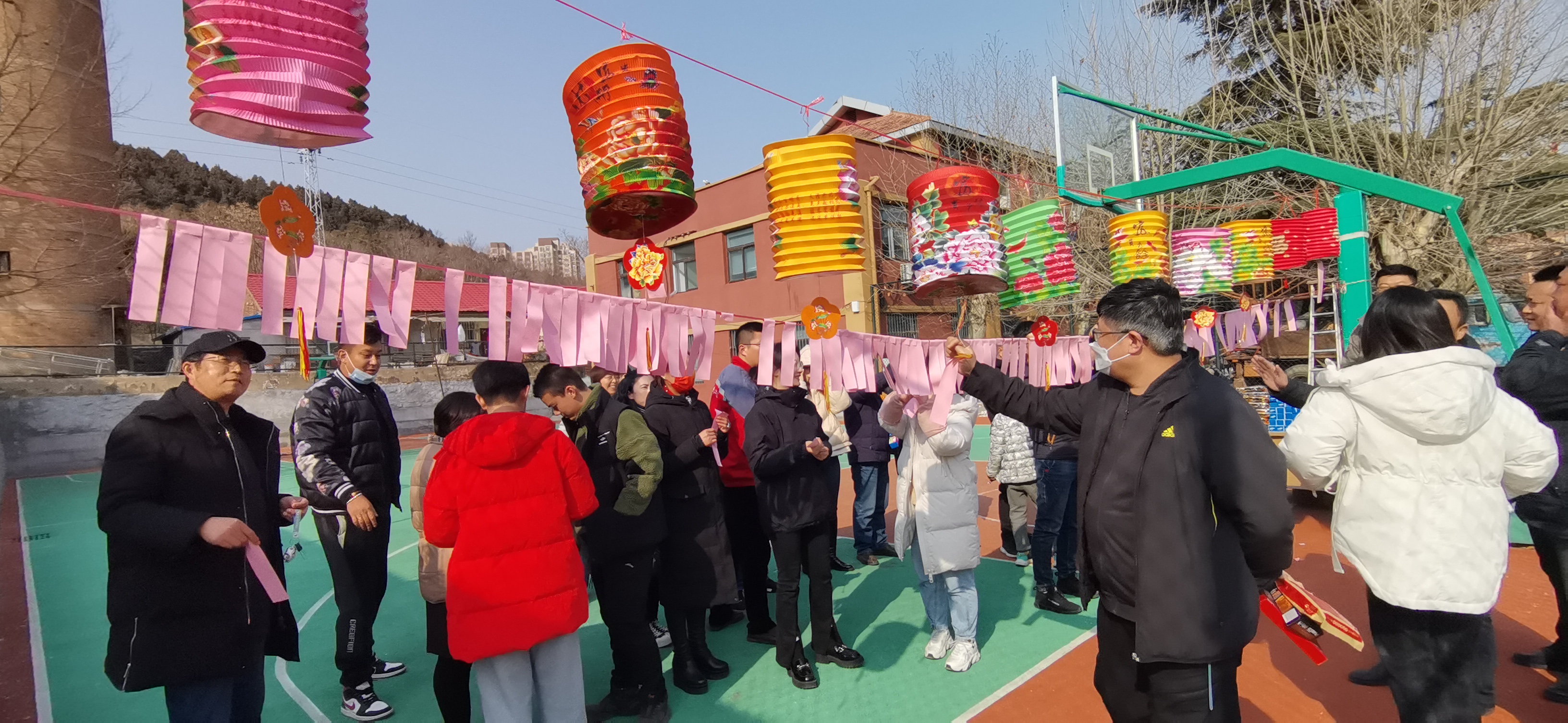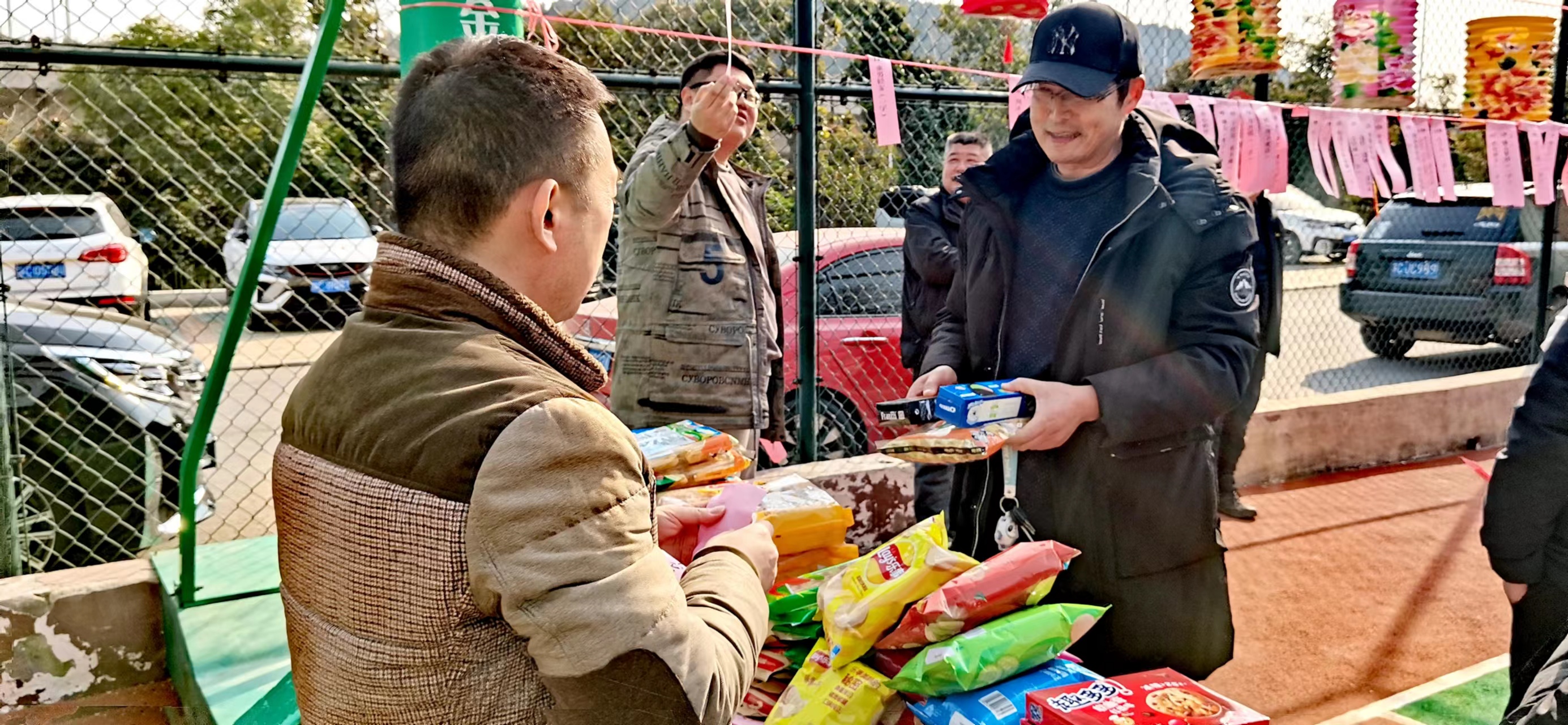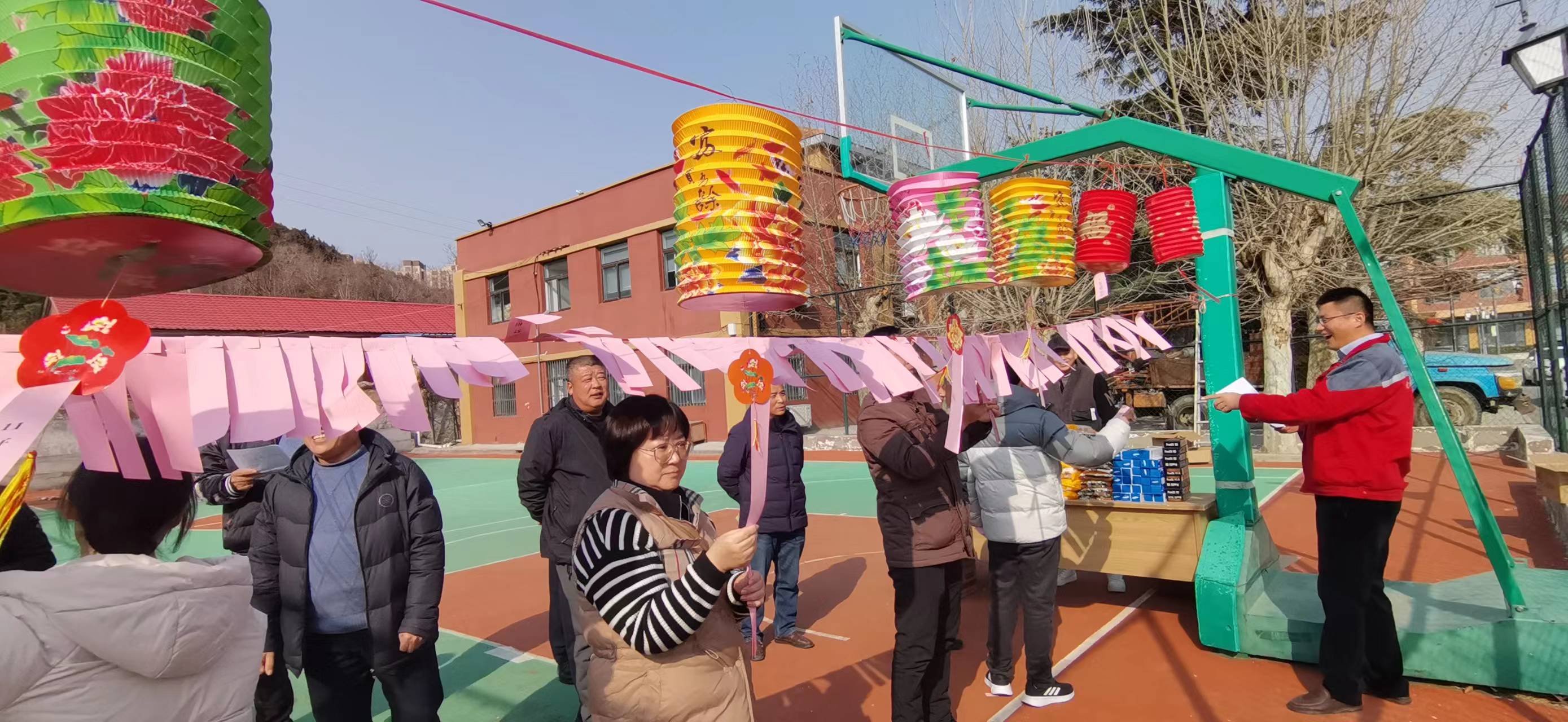 篮球场里张灯结彩,微风吹来,悬挂的百余条谜面随风起舞,职工们兴致勃勃地看谜面、猜灯谜,争先恐后,各显其才,有的苦思冥想,有的互相探讨,共同体验猜灯谜带来的乐趣,到处一片欢声笑语、其乐融融。谜面有大家喜闻乐见的字谜、猜成语、猜地名等,最最有趣的是工会还将单位10位同事的名字做成了灯谜,户外点油灯——孔丰、东北大联欢——关东岳、声速——马赫、好马不卖——刘琪、胸透——赵鑫、窝里横——李猛、儿子的儿子得新冠——孙扬、鸦雀无声——肖婷……猜中的同事无不赞叹工会的别出心裁。