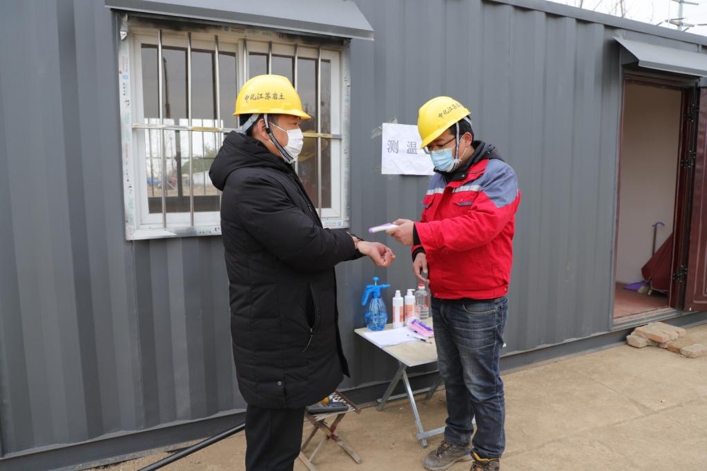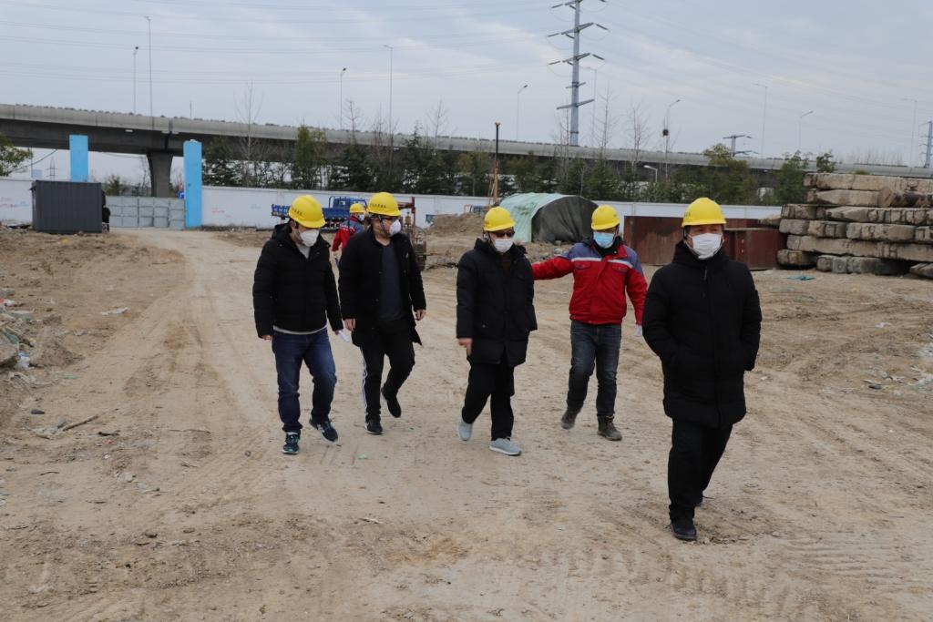 施工现场,黄文院、杨善坪详细询问了项目部疫情防控具体措施以及复工复产开展情况,并对防疫消杀、测温登记、人员防护、安全管理等方面工作的落实情况进行细致检查指导。