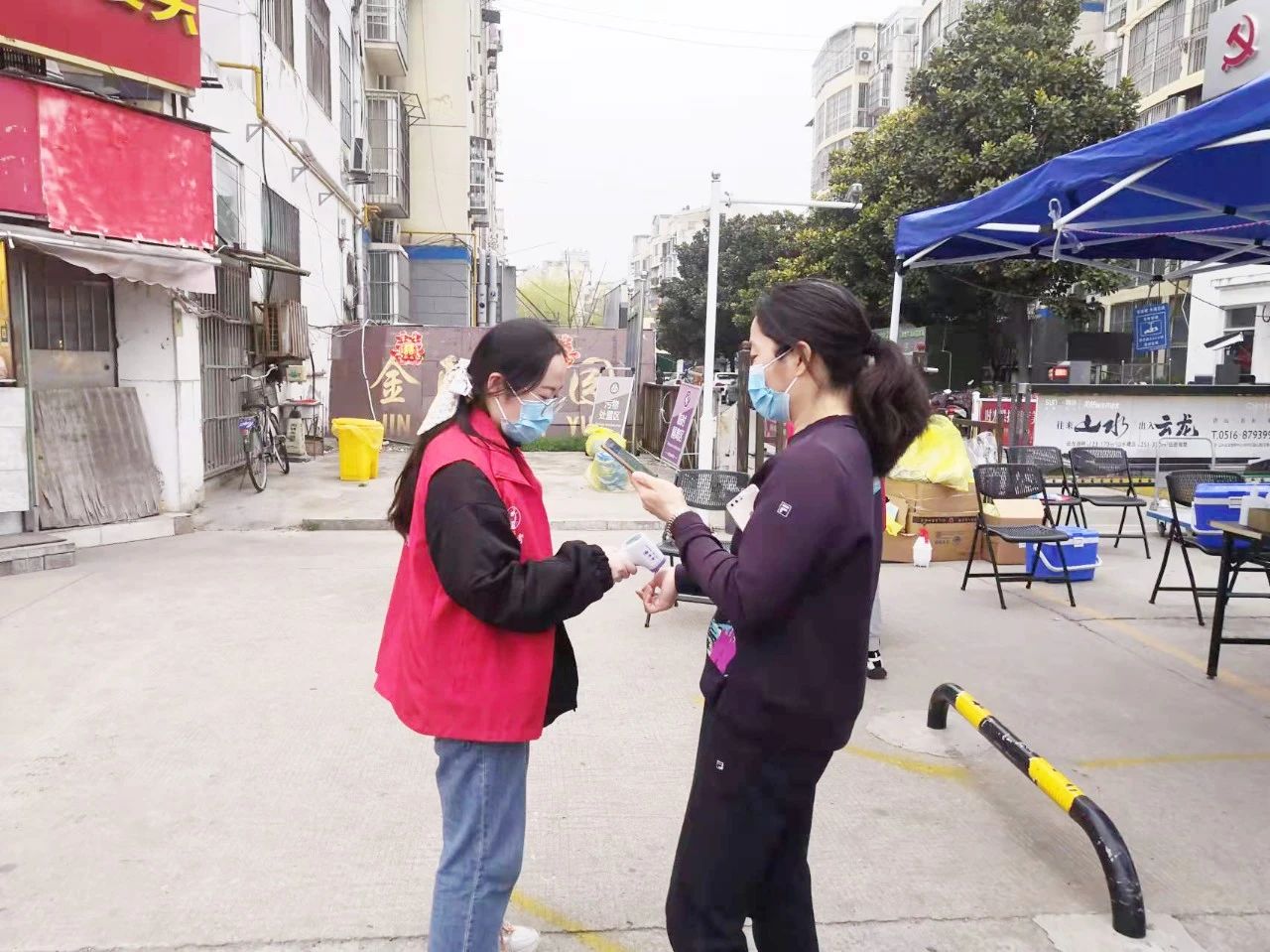 公司(院)青年团员马永霞正在进行测温和秩序维护工作