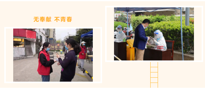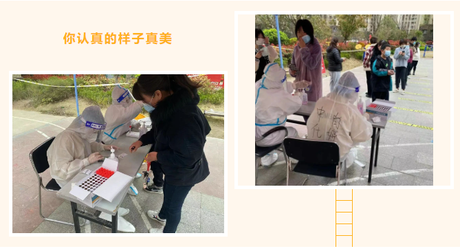 你早上五点半赶往指定地点时,居民已然排起了长队,在拿到防护服的那一刻,你感受到沉甸甸的责任和无所畏惧的力量,这力量来自于不顾安危、奔赴在抗疫一线的工作人员,来自于积极配合防疫的市民,更来自于决不‘躺平’、全力抗疫的祖国。在志愿服务期间,你切身体会到防疫人员的不易,你们不仅要忍受三月忽冷忽热的天气,而且在整个志愿服务过程中不喝水、不吃东西、不上厕所,节省时间只为能多做几个咽拭子,缓和大家的焦虑。你们是我们的榜样,感谢你们的守护,为你们的无私无畏点赞!也相信有你们,疫情定会早日散去,春归燕来,花开如常,山河定无恙,你我皆安康。