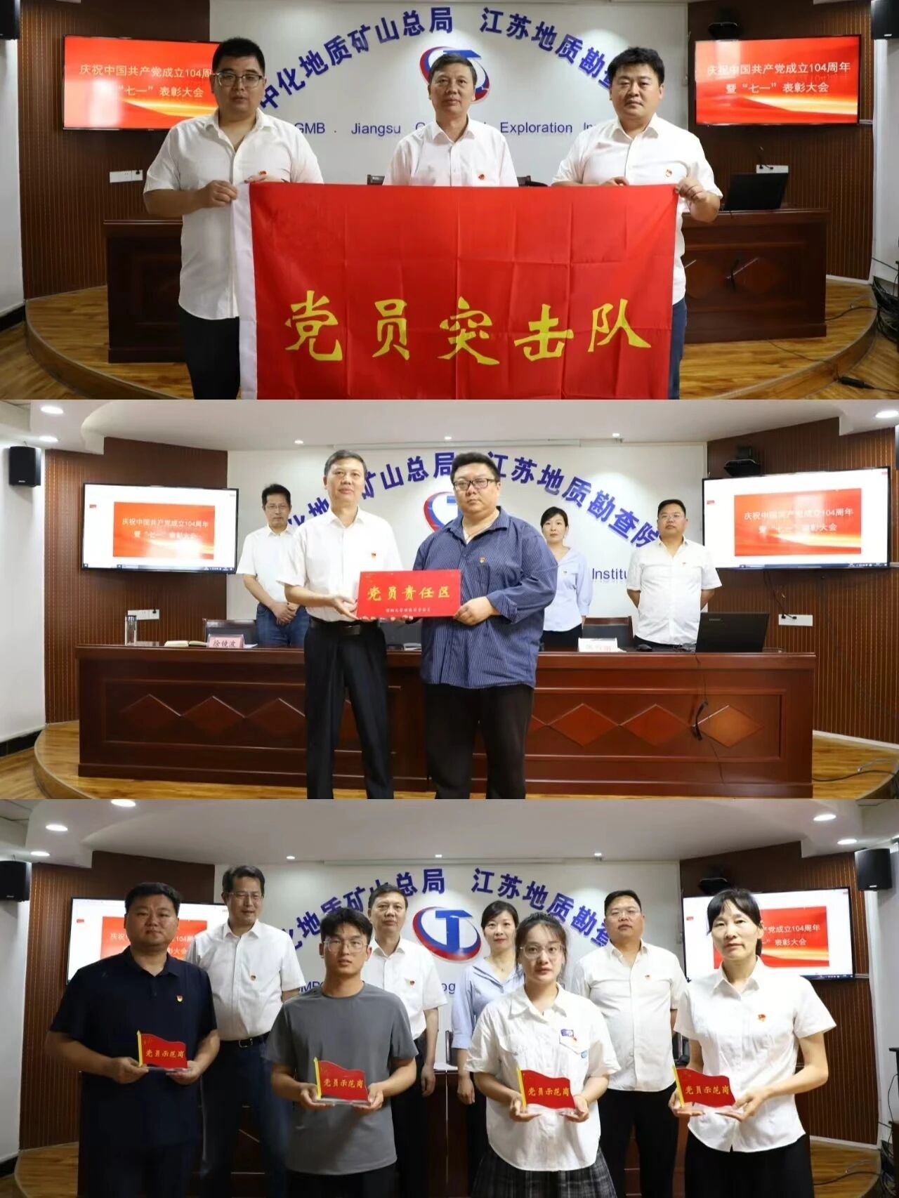 院(公司)党委对“两优一先”、优秀党员示范岗进行了表彰并颁发荣誉证书,为党员突击队授旗,为党员示范岗党员、党员责任区代表进行授牌,并为离退休党支部党员代表、七一前后入党党员颁发了政治生日卡。“两优一先”党员代表、示范岗党员代表、突击队党员代表分别作了发言。