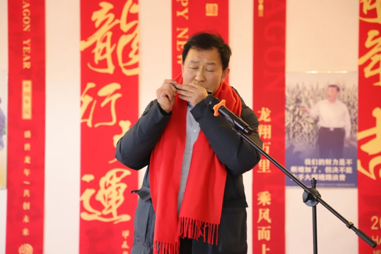 离退休职工代表即兴口琴演奏《友谊地久天长》对单位、对战友的满满的眷念之情,激情献唱的《北国之春》深情又豪迈。