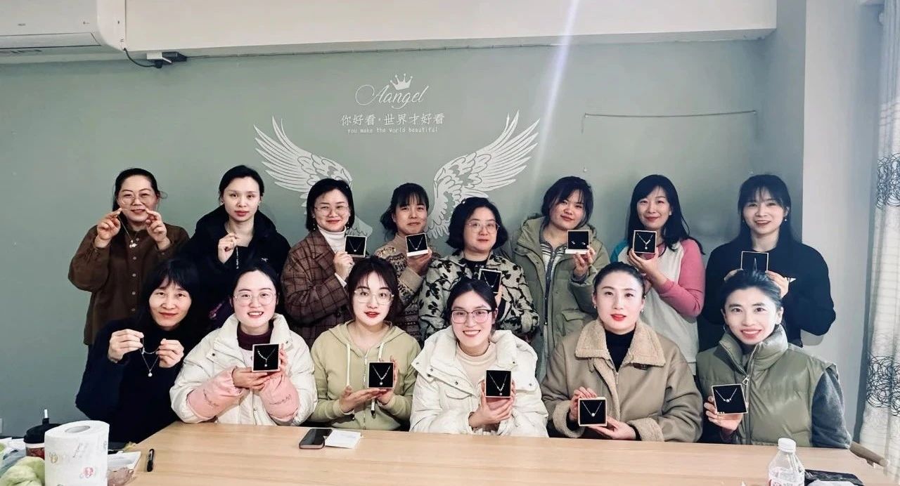 接着就是制作环节,取珠、浸洗、抛光、选配饰、打孔、镶嵌……大家无比投入,小心翼翼精心雕琢自己最心爱的礼物,无喧嚣,无烦絮,内心沉静而美好。大家充分发挥自己的创造力和想象力,将颗颗饱满的珍珠制作成自己心仪的饰品,精巧华丽,别具一格,大家开心地展示着作品,心里满是收获和满足。