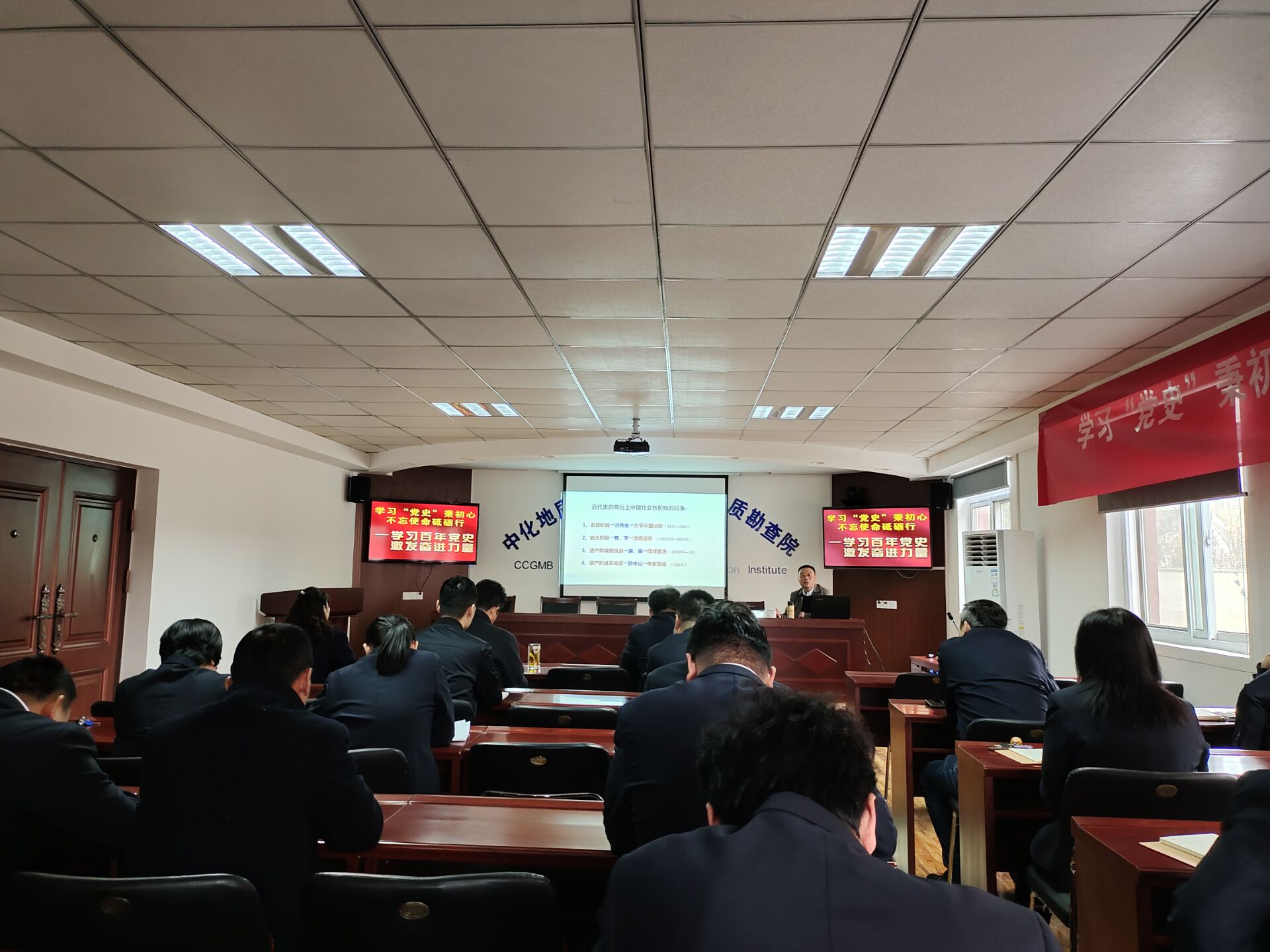 3月31日,我院邀请到中共徐州市委党校党史党建教研室主任、徐州市委宣讲团成员曾德亮教授为广大党员上党课,他围绕“革命时期完成救国大业、建设时期完成兴国大业、改革开放完成富国大业、新时代完成强国大业”这四个阶段全面阐释了中国共产党人的初心和使命。